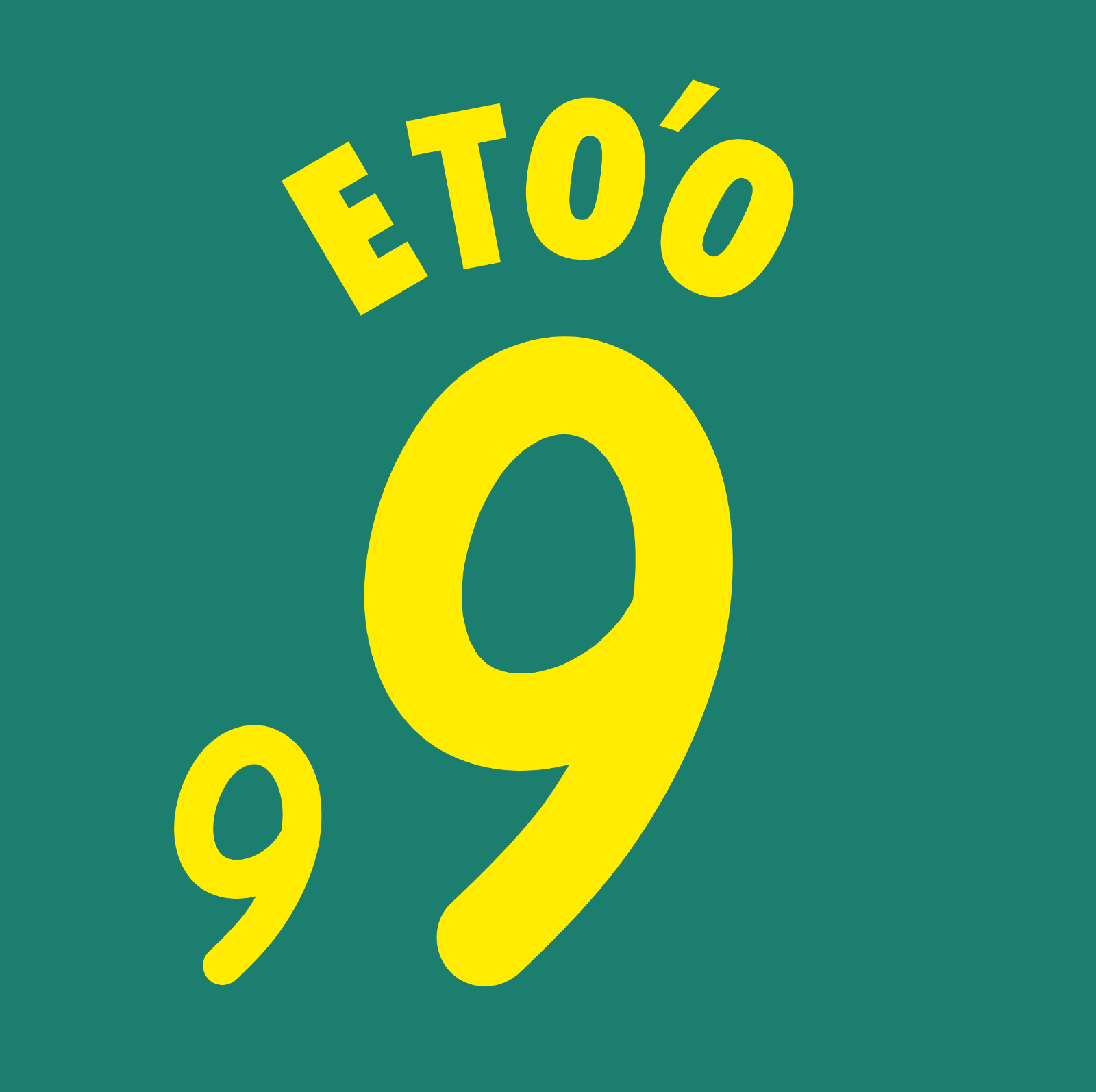 Player size Flock Name and number set for Cameroon Home 2002 Shirt (Korea/Japan World Cup).