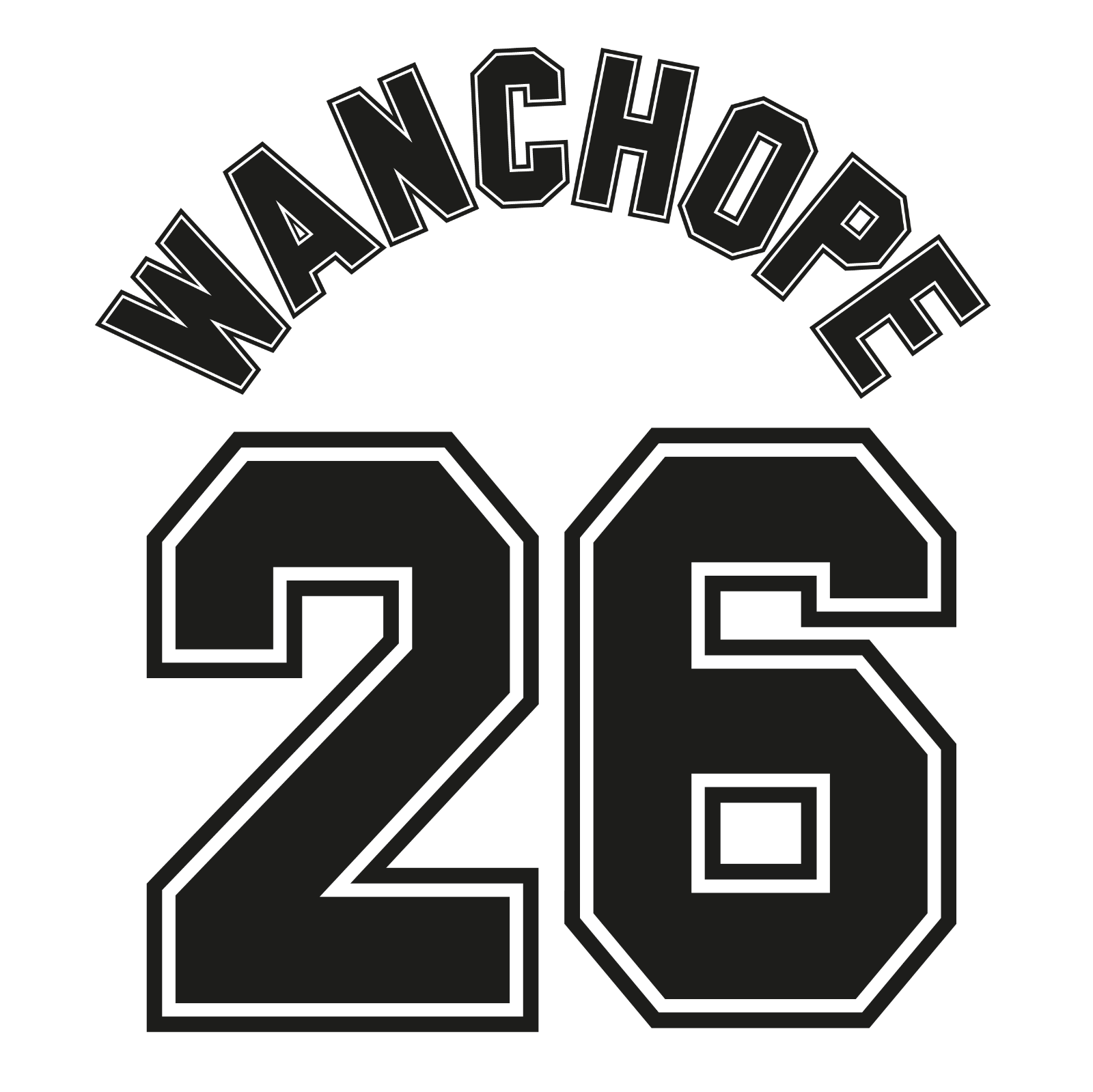 Any name and number available upon request (max 2 numbers and 15 letters). High-quality black flock (velvet feel) print like those worn by players.