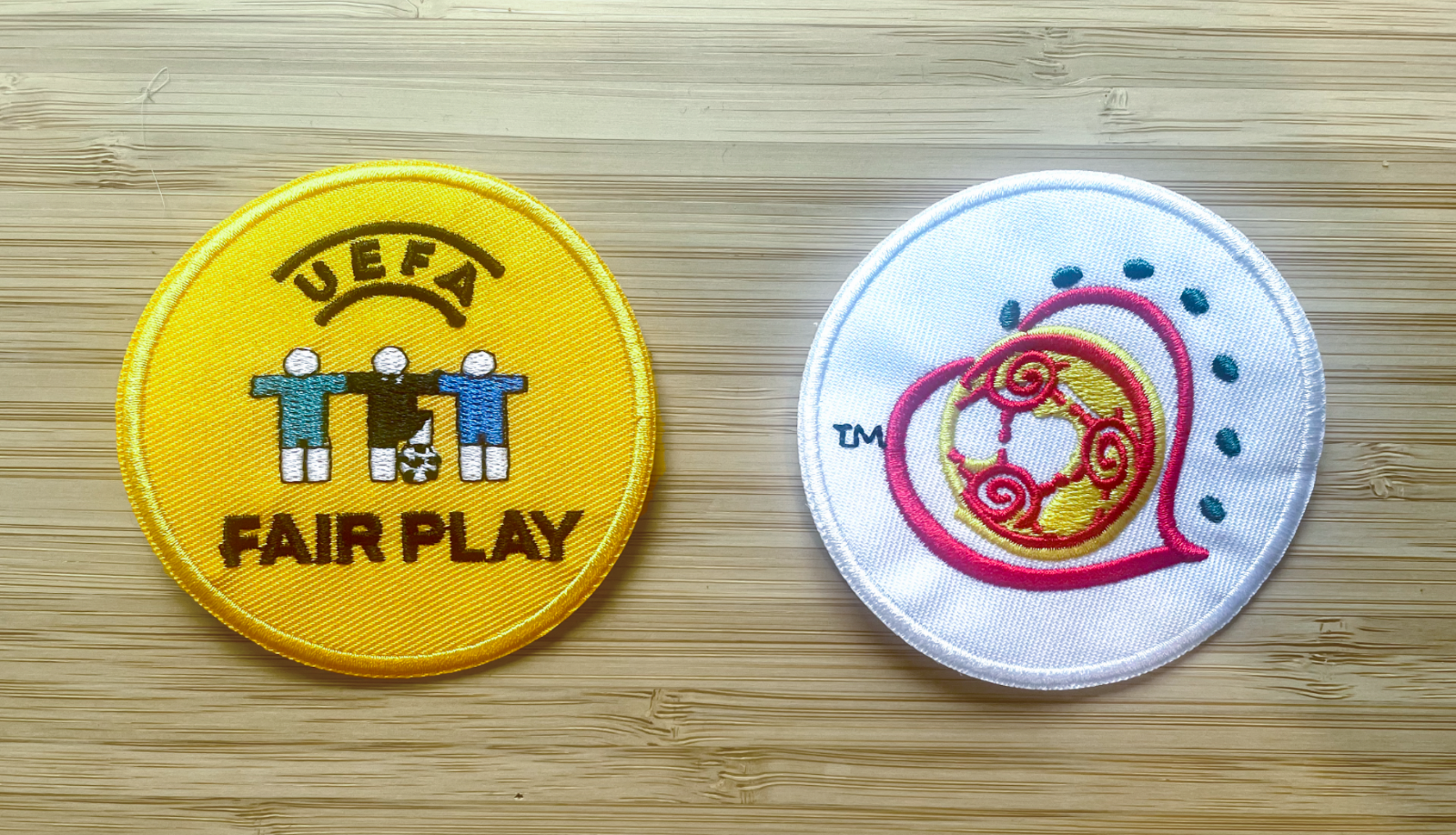 Embroidered iron-on patches for left and right sleeves of the tournament logo and ´Fair Play´.