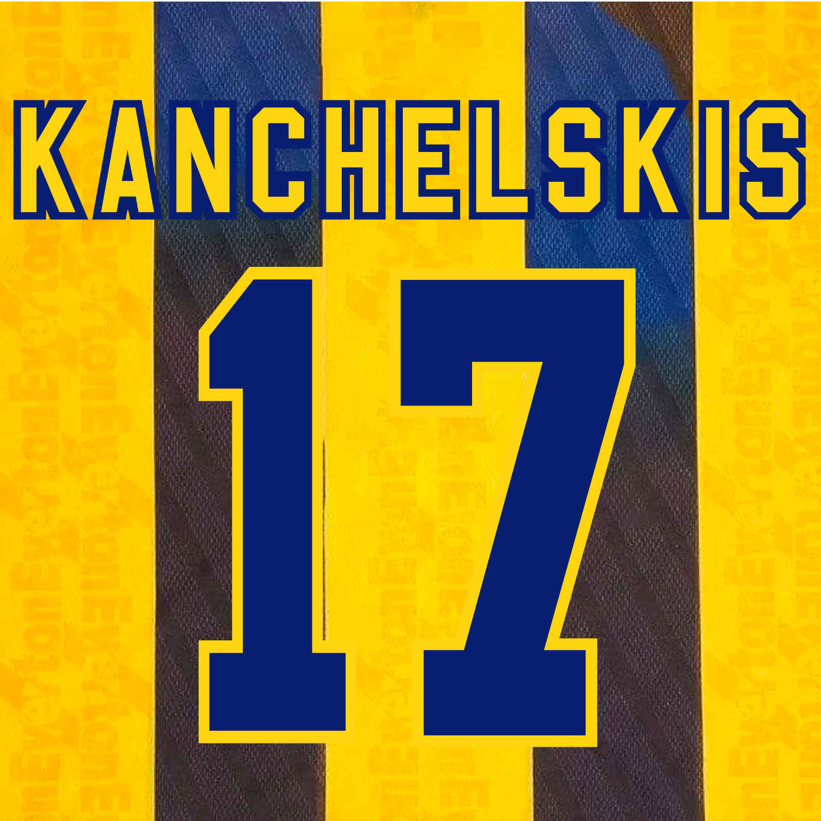 Any name and number available upon request (max 2 numbers and 15 letters). High-quality dual-layer (velvet feel) print like those worn by players (blue and warm yellow layers). Yellow Umbro logo can be requested for number(s)