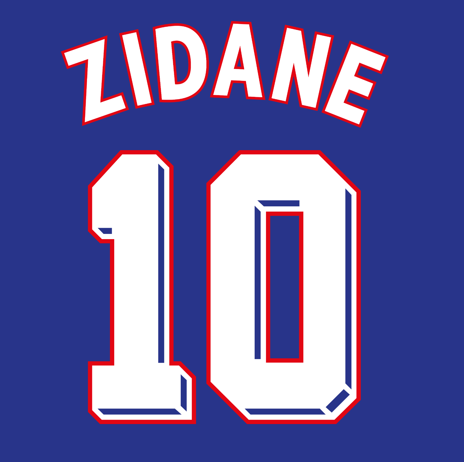 Player size Flock Name and Number set for France 1998 Home Shirt