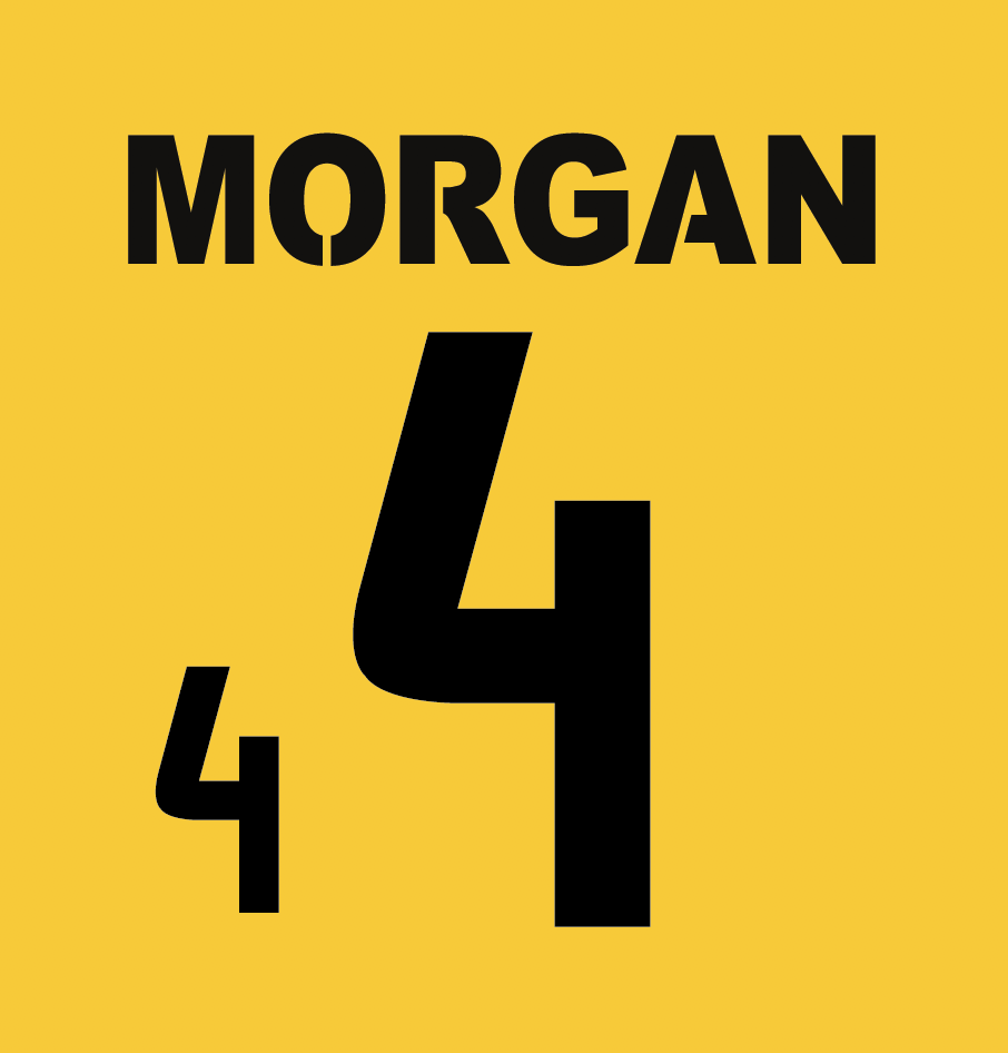Any name and number available. Small number for front of shirt also included. High-quality black flex (plastic feel) print, exactly like those worn by players.