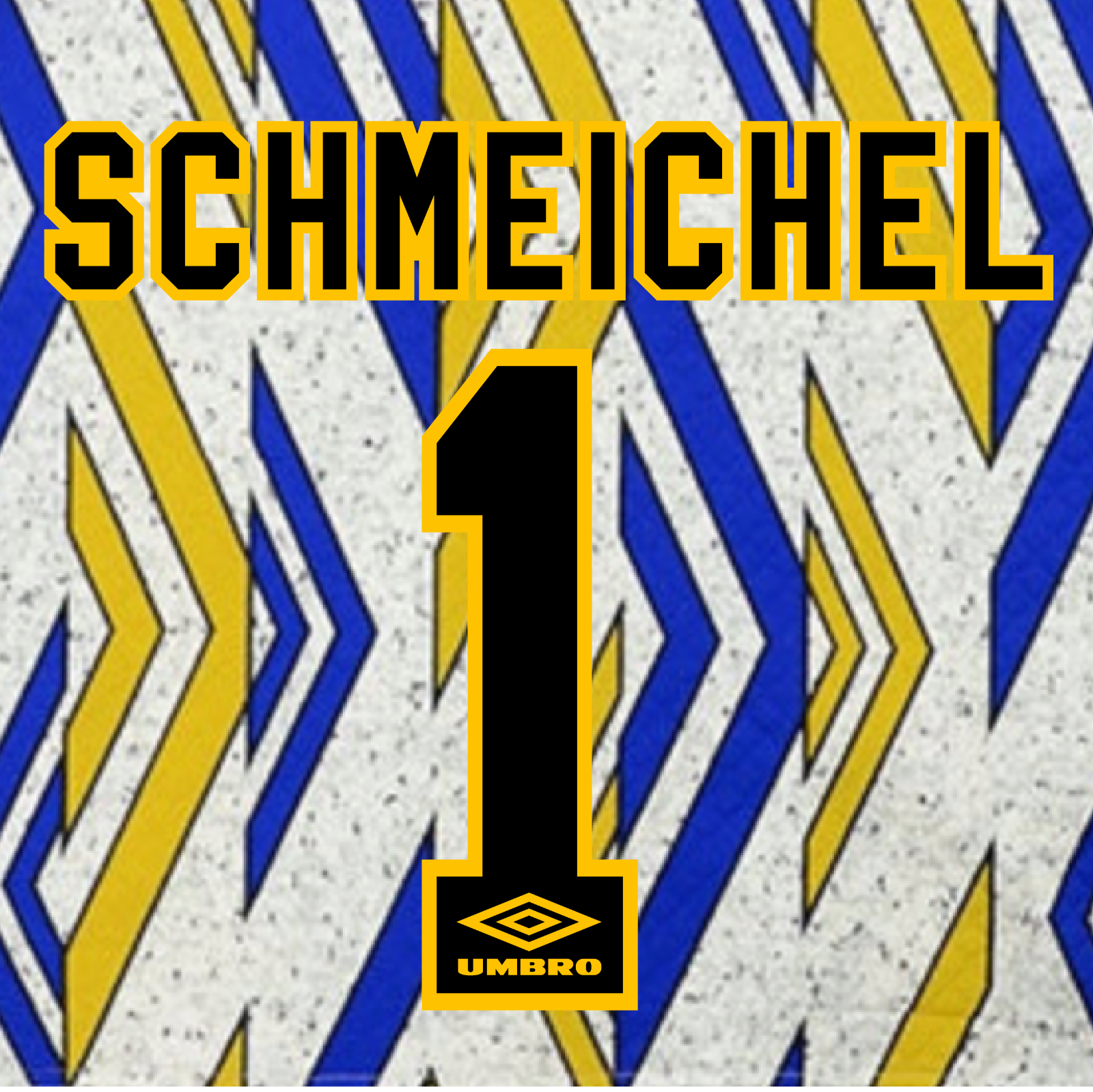 Player size Flock Name and number set for 1993-95 Manchester United Away Goalkeeper Shirt.