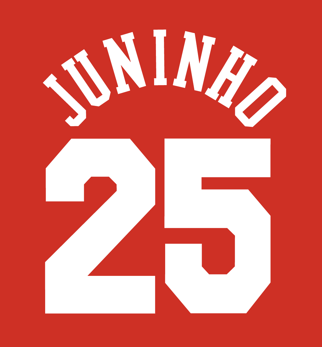 High-quality white flock (velvet feel) print like those worn by players, of JUNINHO 25 as pictured.