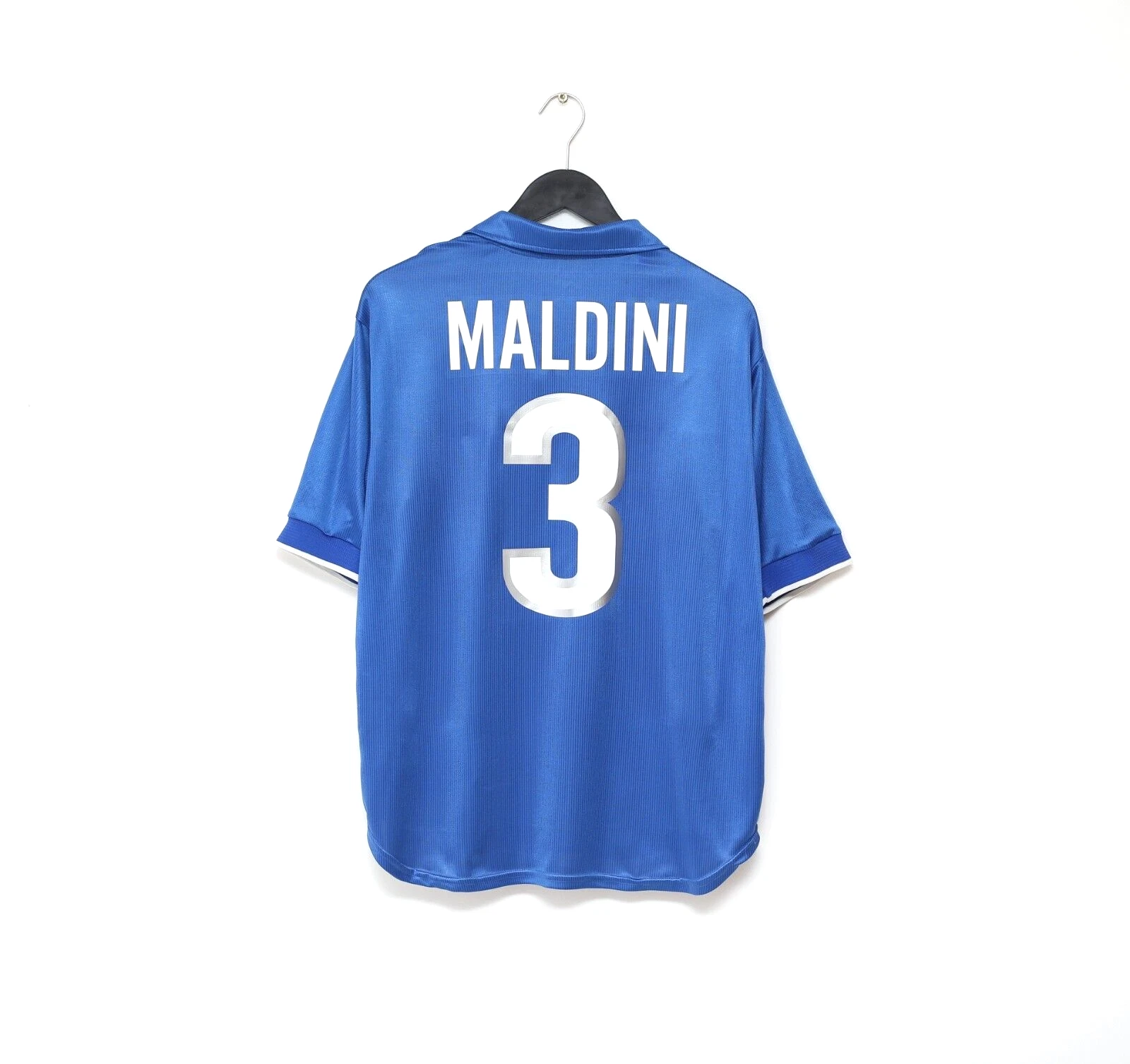 | ITALY 1997/1998 HOME SHIRT [XL] | #3 MALDINI | White HQ vinyl w/ silver outline - double layered _ small No.3 to the front |